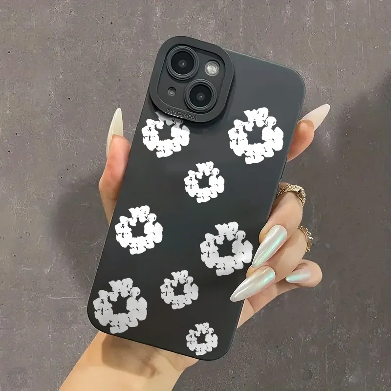 Case For iPhone 16 Cases iPhone 15 11 12 13 14 Pro Max X XS XR 7 8 16E 15 Plus Black Stylish Flower Patterned Design Phone Cover